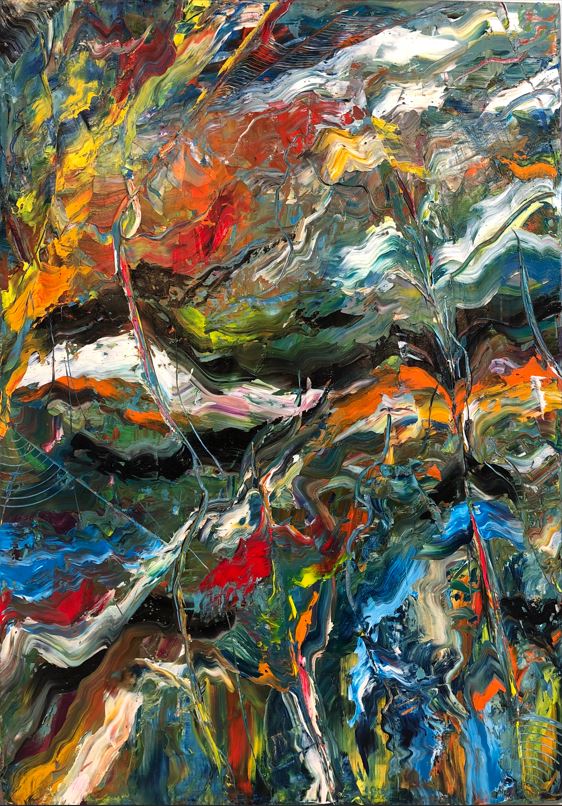 My painting "River Colors of the Rainbow - Caño Cristales 2" is a passionate tribute to the dazzling beauty of Caño Cristales, the iconic Colombian river. Located in the Serranía de la Macarena, Meta, this natural paradise presents itself as a symphony of colors that captivates any observer.